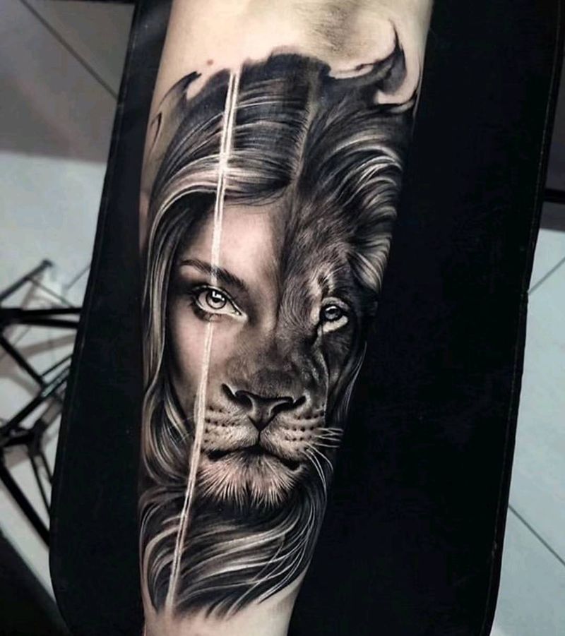 半人半兽纹身图片_手臂欧美写实纹身图案