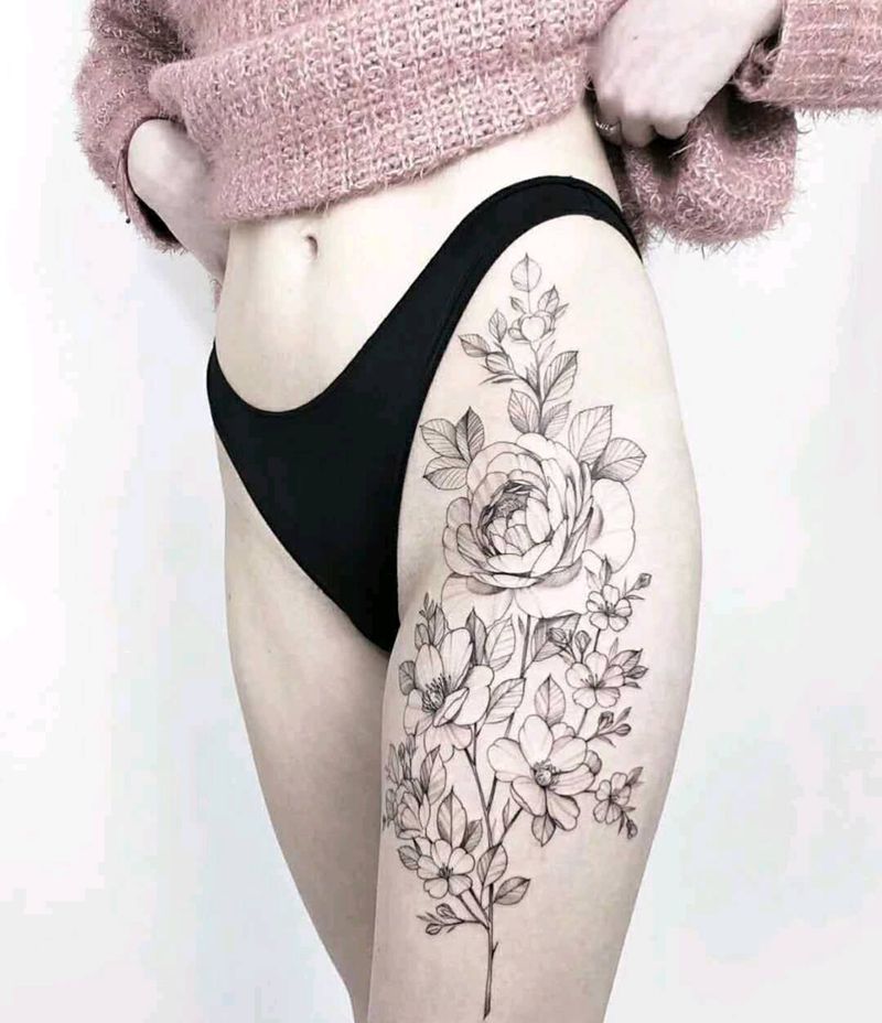 性感素花纹身图片_腿部腰部小清新纹身图案