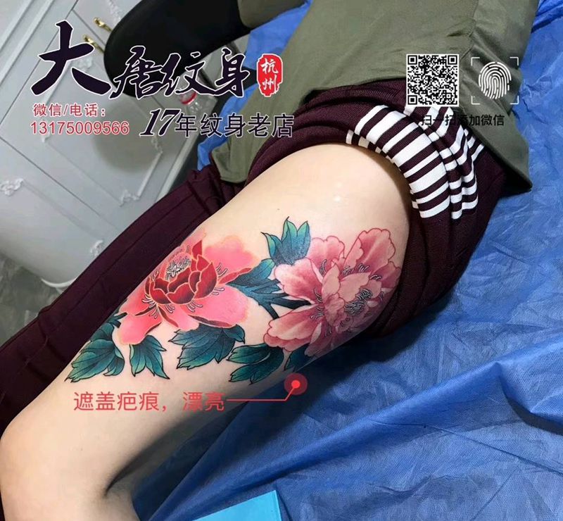 当前位置: 首页 >浙江省杭州市纹身店-大唐纹身纹身图案>牡丹遮盖纹身图片_腿部新传统水彩纹身图案