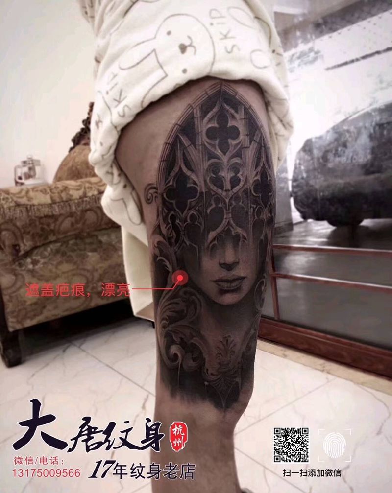 当前位置: 首页 >浙江省杭州市纹身店-大唐纹身纹身图案>疤痕遮盖纹身图片_腿部欧美写实纹身图案