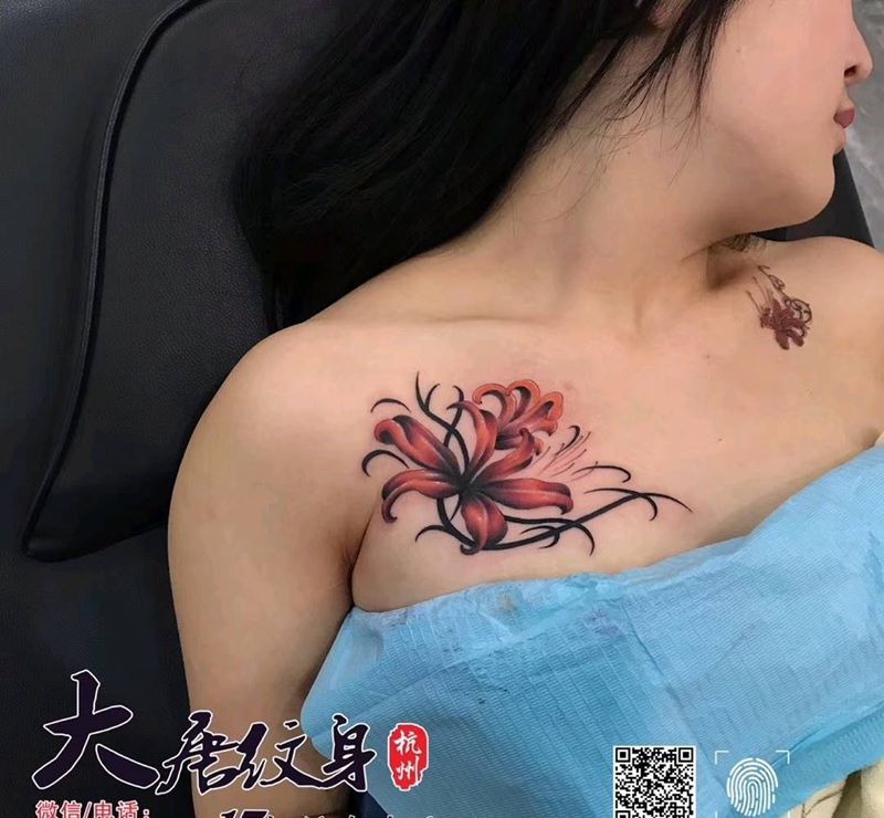 当前位置: 首页 >浙江省杭州市纹身店-大唐纹身纹身图案>彼岸花纹身图片_胸部水彩小清新纹身图案