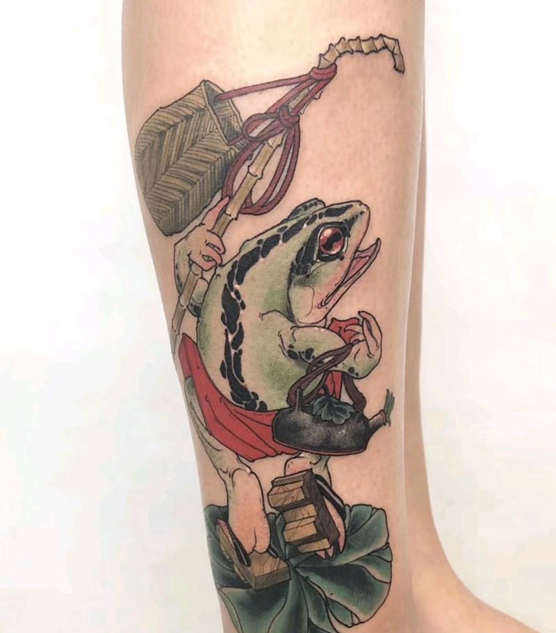 传统蛙纹身图片_腿部手部水彩传统纹身图案