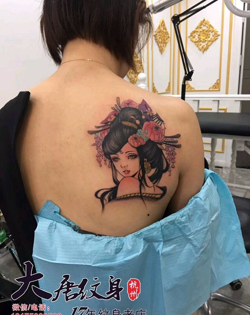当前位置: 首页 >浙江省杭州市纹身店-大唐纹身纹身图案>艺妓纹身图片_背部新传统水彩纹身图案
