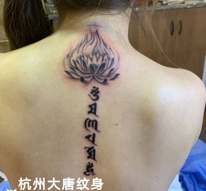 当前位置: 首页 >浙江省杭州市纹身店-大唐纹身纹身图案>莲花梵文纹身图片_背部水墨纹身图案