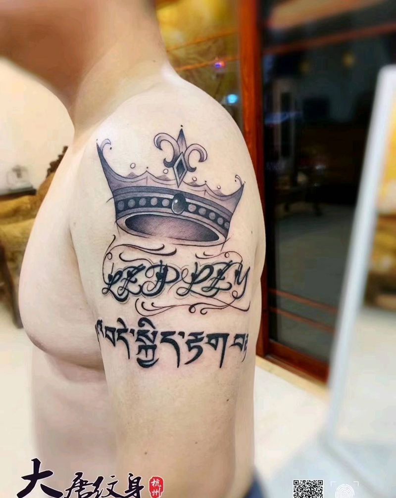 当前位置: 首页 >浙江省杭州市纹身店-大唐纹身纹身图案>精修加皇冠一枚纹身图片_手臂花体字小清新纹身图案