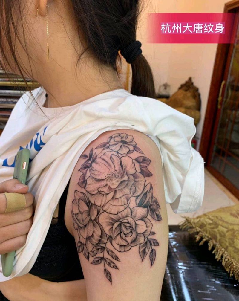 • 女性大花胸纹身_43张霸气漂亮的女性大花胸纹身图案作品