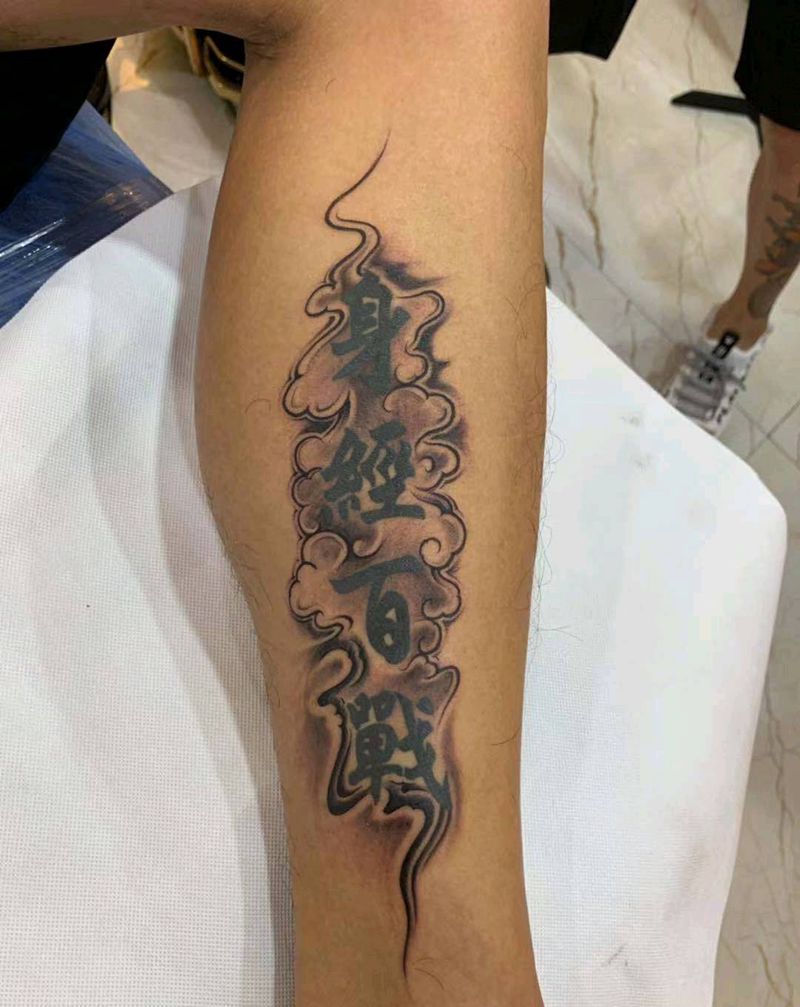 当前位置: 首页 >浙江省杭州市纹身店-大唐纹身纹身图案>文字上色加打雾纹身图片_腿部纹身图案