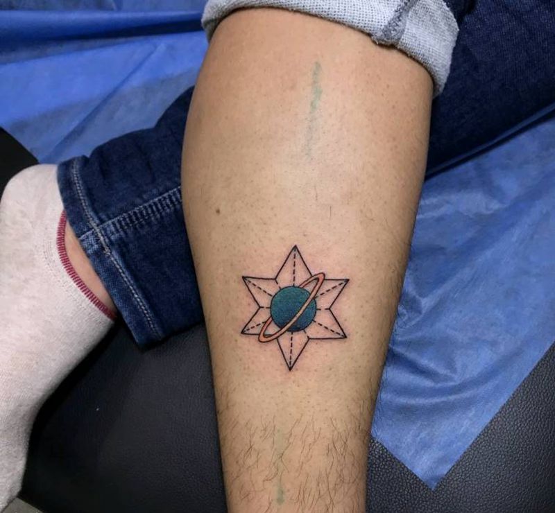 马+星球纹身图片_腿部水彩小清新纹身图案