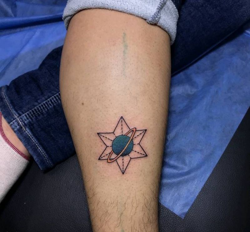 马+星球纹身图片_腿部水彩小清新纹身图案