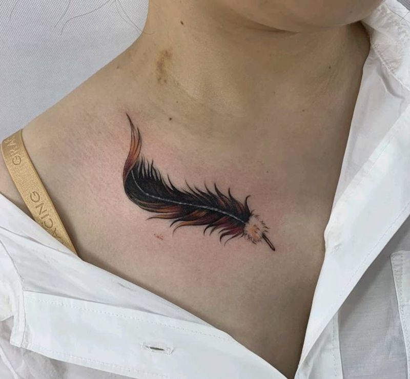 英文遮盖纹身图片_胸部水彩小清新写实纹身图案