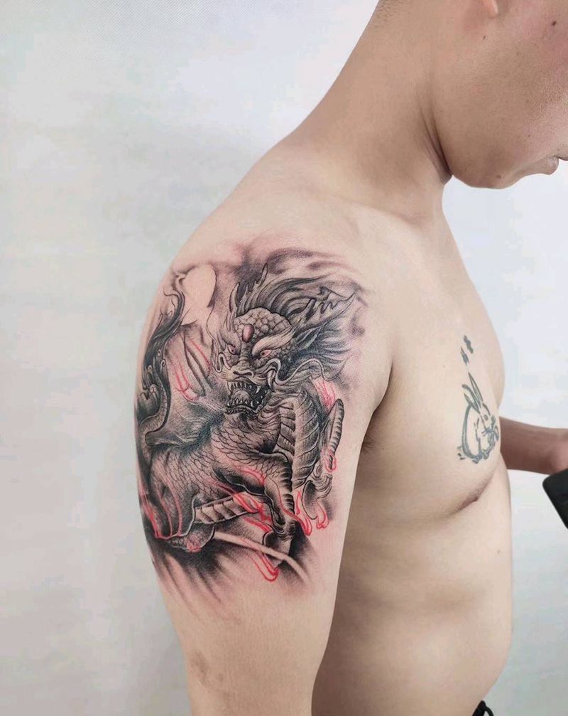 • T网红王老大花腿龙纹身图片_腿部新传统纹身图案