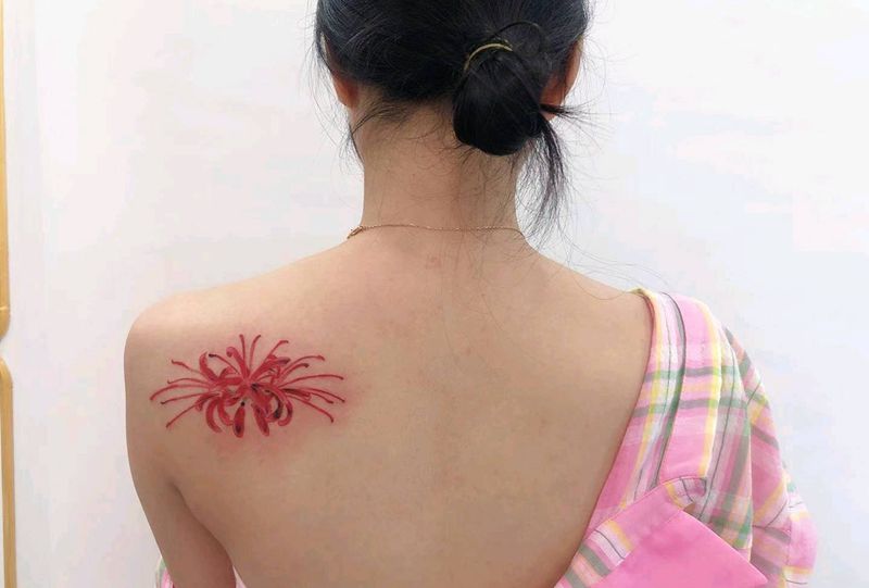 彼岸花纹身图片_肩部水彩小清新纹身图案