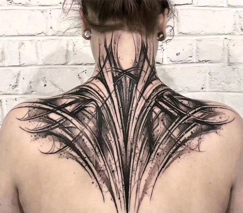 黑灰满背纹身图案