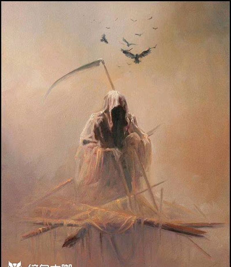 死神纹身图片_背部手臂水彩欧美写实纹身图案
