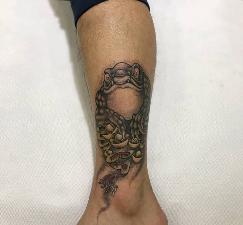 招财进宝纹身图片_腿部新传统纹身图案