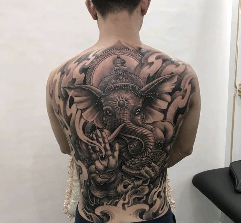 当前位置: 首页 >浙江省杭州市纹身店-大唐纹身纹身图案>象神纹身图片_背部老传统新传统纹身图案