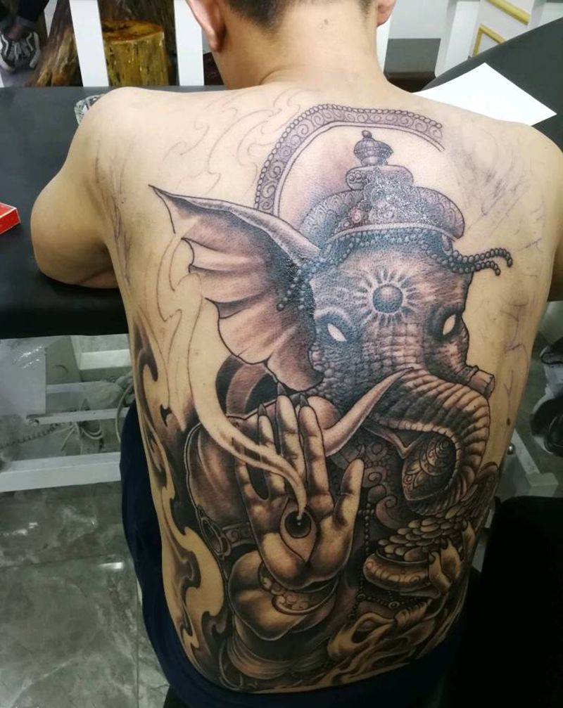 当前位置: 首页 >浙江省杭州市纹身店-大唐纹身纹身图案>象神纹身图片_背部老传统新传统纹身图案