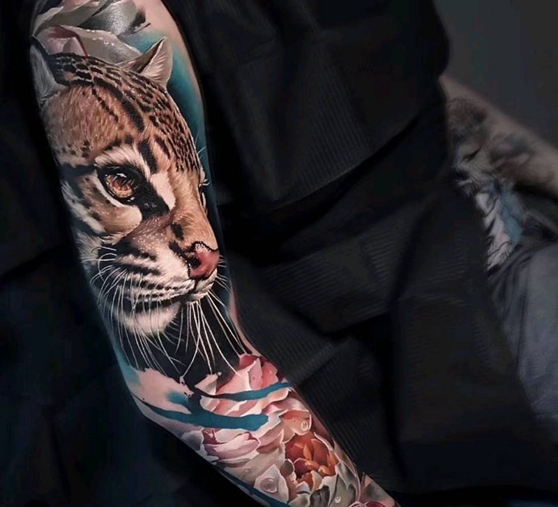 欧美炫彩花臂纹身图片_手臂水彩欧美写实纹身图案