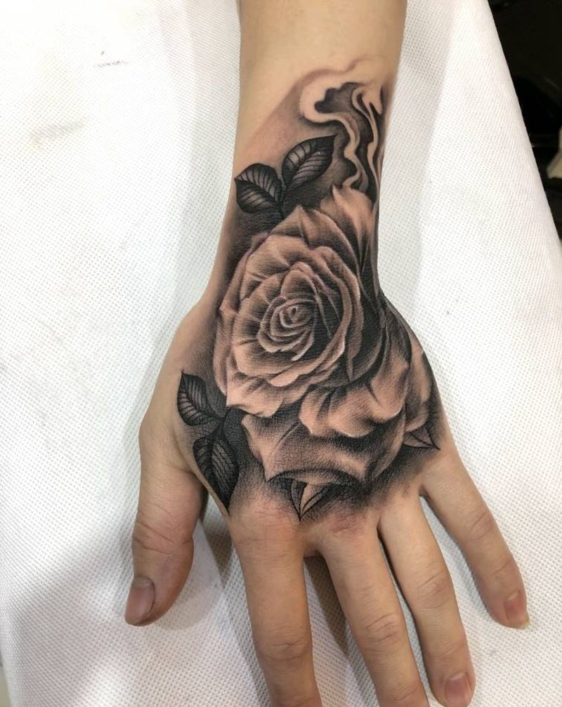 写实玫瑰纹身图片_手部欧美写实纹身图案