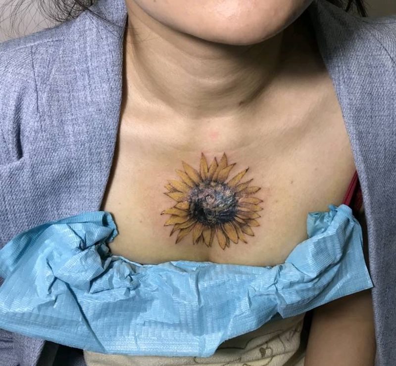 疤痕遮盖纹身图片_胸部水彩遮盖纹身图案