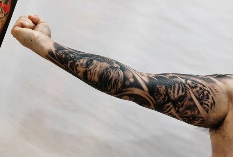 欧美写实花臂纹身图片_手臂欧美写实纹身图案