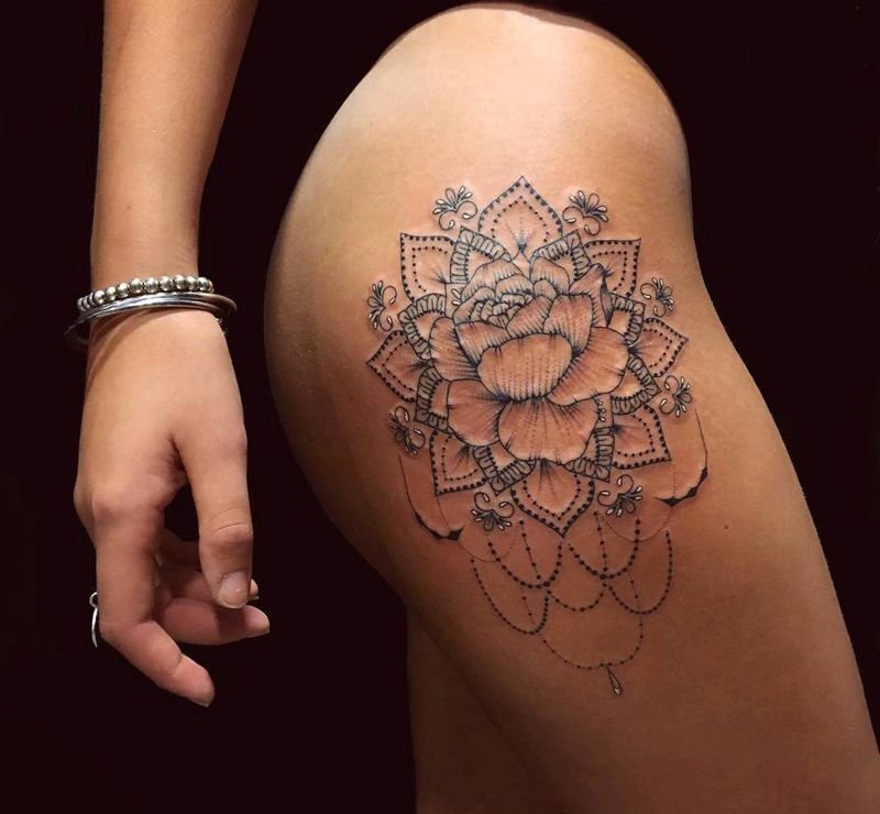 繁花、素花纹身分享纹身图片_臀部点刺纹身图案