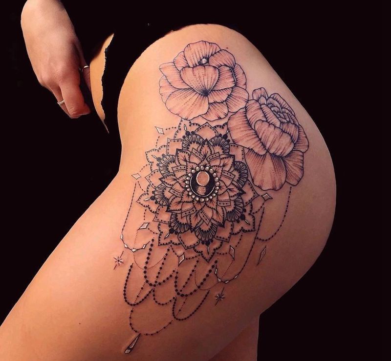 繁花、素花纹身分享纹身图片_臀部点刺纹身图案