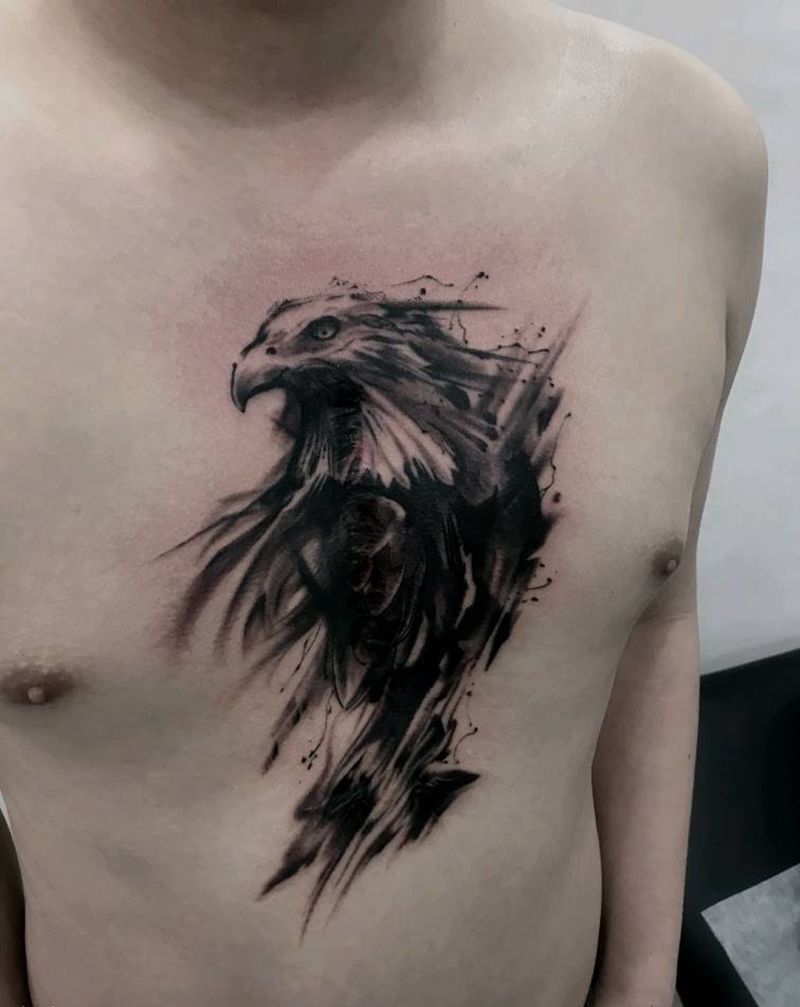 遮盖作品鹰纹身图片_胸部水墨纹身图案