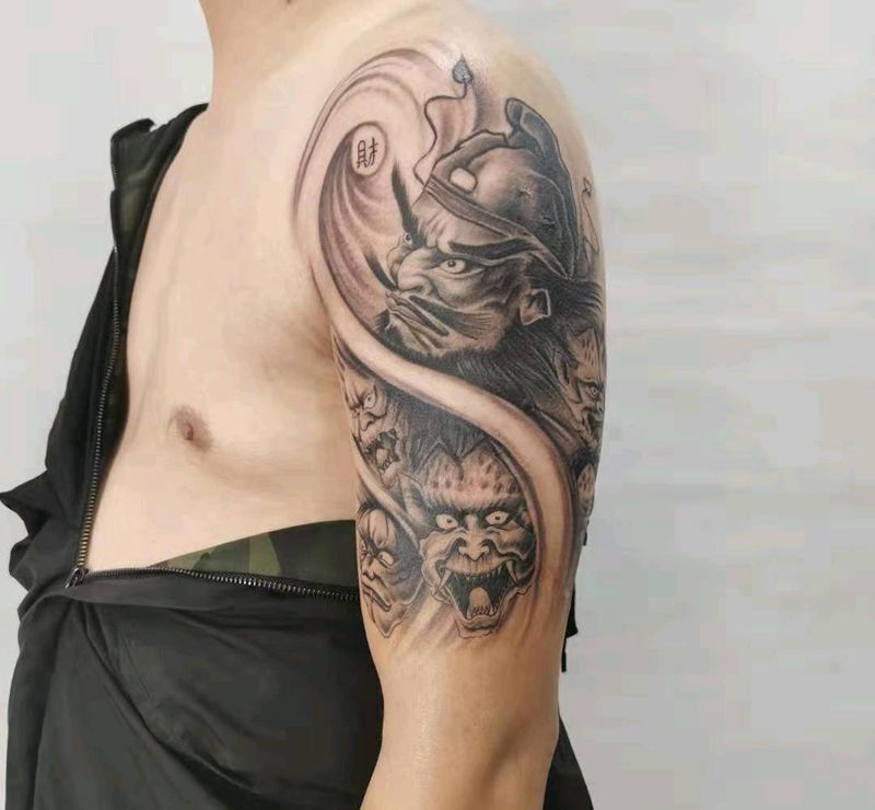 当前位置: 首页 >浙江省杭州市纹身店-大唐纹身纹身图案>旧纹身遮盖钟馗纹身图片_手臂新传统纹身图案