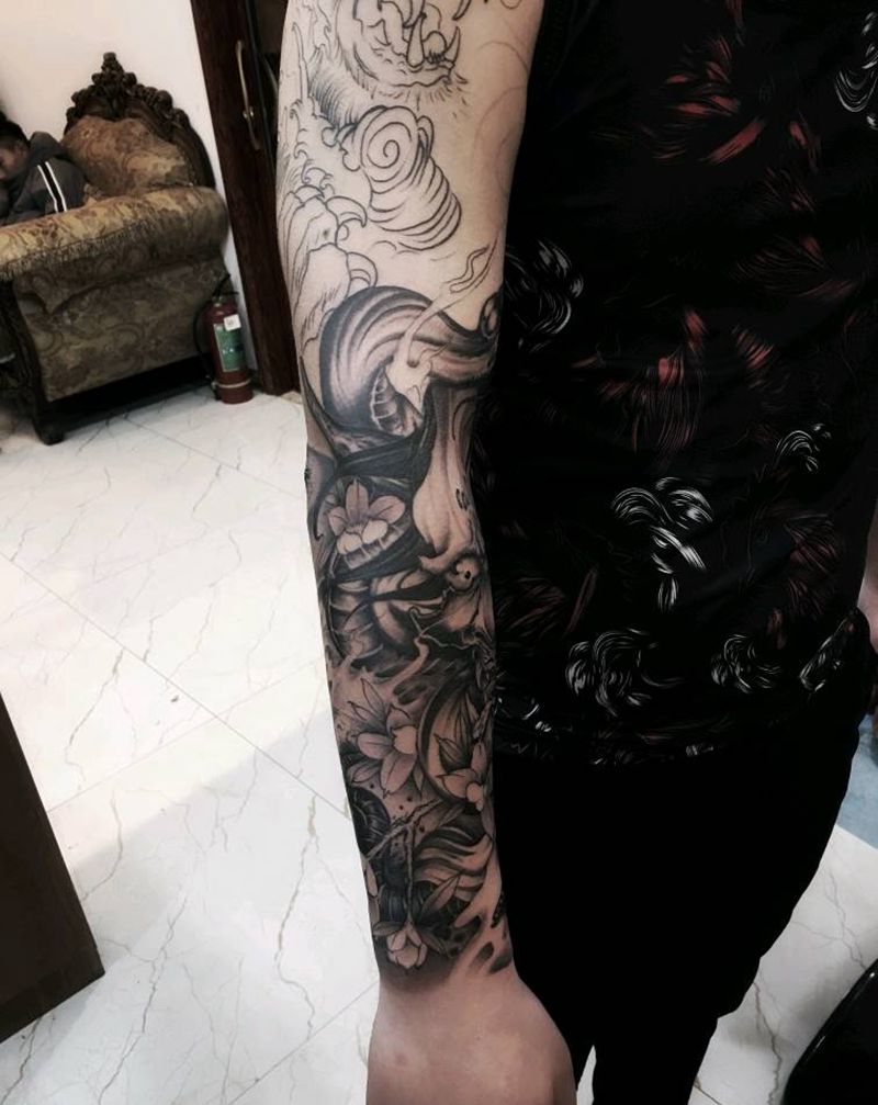当前位置: 首页 >浙江省杭州市纹身店-大唐纹身纹身图案>传统花臂(未完工)纹身图片_手臂新传统纹身图案