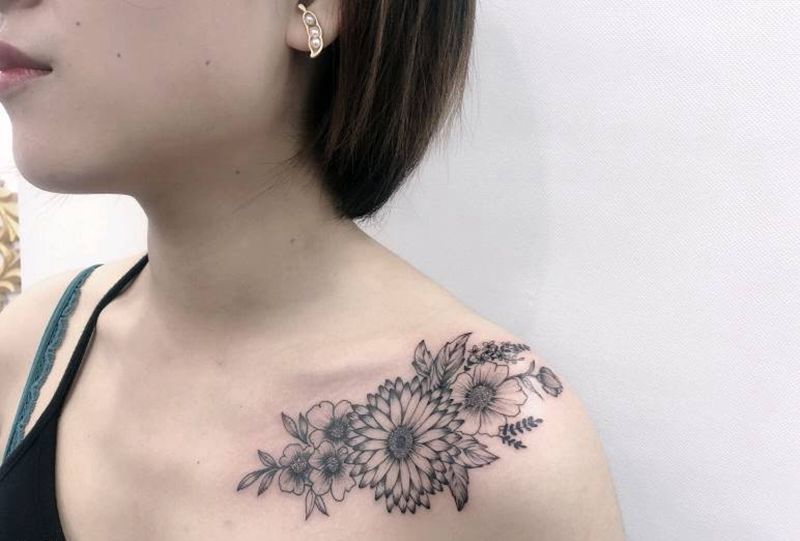 雏菊纹身图片_肩部小清新纹身图案