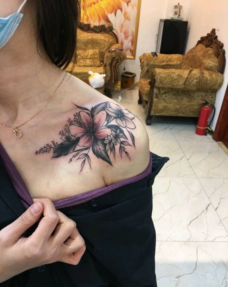• 女性大花胸纹身_43张霸气漂亮的女性大花胸纹身图案作品