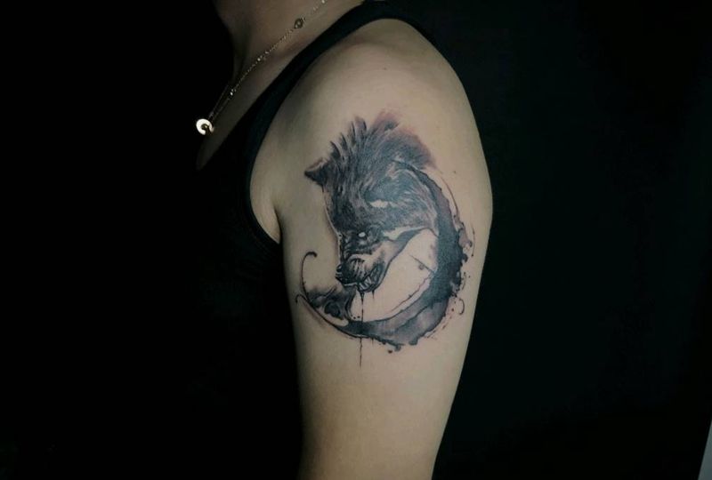 当前位置: 首页 >浙江省杭州市纹身店-大唐纹身纹身图案>水墨狼纹身图片_手臂水墨纹身图案