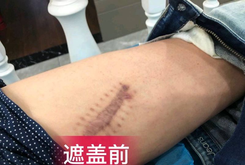 疤痕遮盖纹身图片_腿部水墨纹身图案