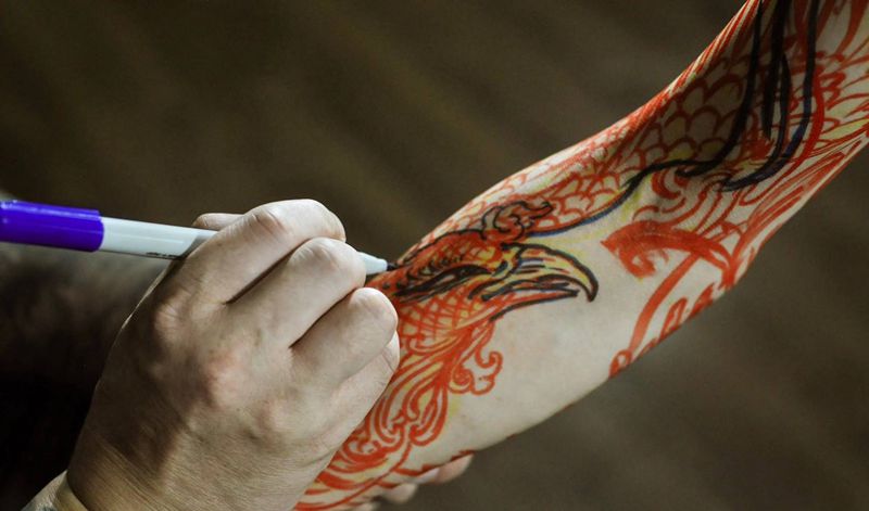 当前位置: 首页 >浙江省杭州市纹身店-异绣堂纹身工作室纹身图案>龙凤呈祥纹身图片_手臂新传统原创作品纹身图案