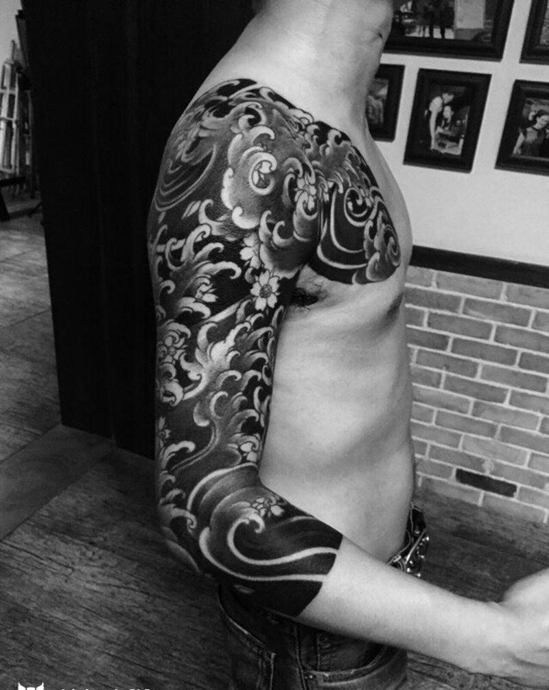 当前位置: 首页 >浙江省杭州市纹身店-异绣堂纹身工作室纹身图案>海浪传统七分袖纹身图片_手臂手部传统原创纹身图案