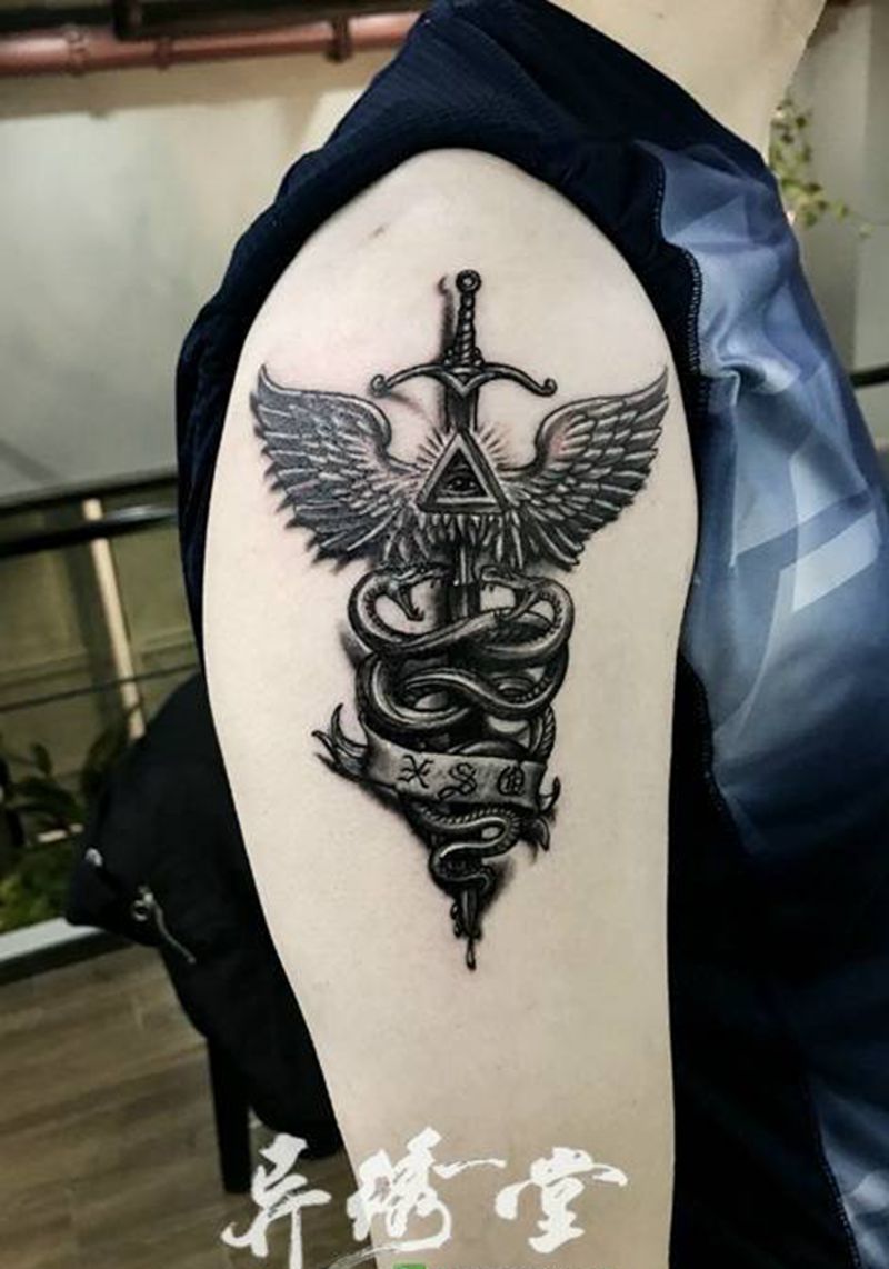 • 纹身吧推荐的披肩图腾半胛纹身图案作品展示
