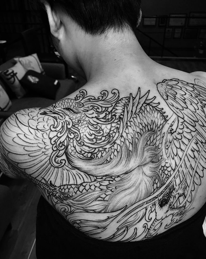 当前位置: 首页 >浙江省杭州市纹身店-异绣堂纹身工作室纹身图案>凤凰纹身图片_颈部肩部胸部腹部腰部背部臀部手臂腿部脚部纹身图案