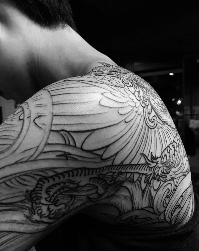 当前位置: 首页 >浙江省杭州市纹身店-异绣堂纹身工作室纹身图案>凤凰纹身图片_颈部肩部胸部腹部腰部背部臀部手臂腿部脚部纹身图案
