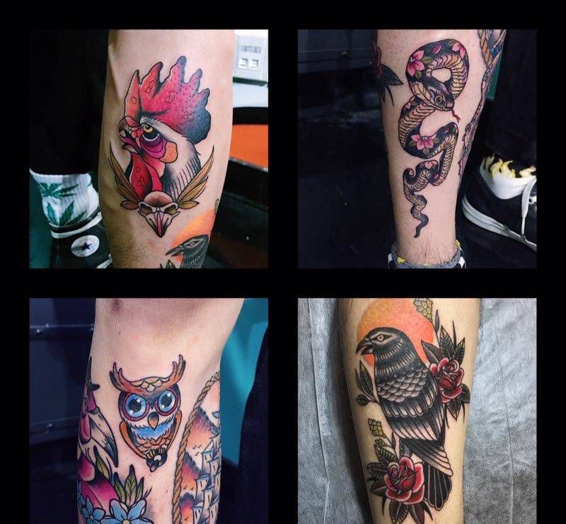 • T网红王老大花腿龙纹身图片_腿部新传统纹身图案