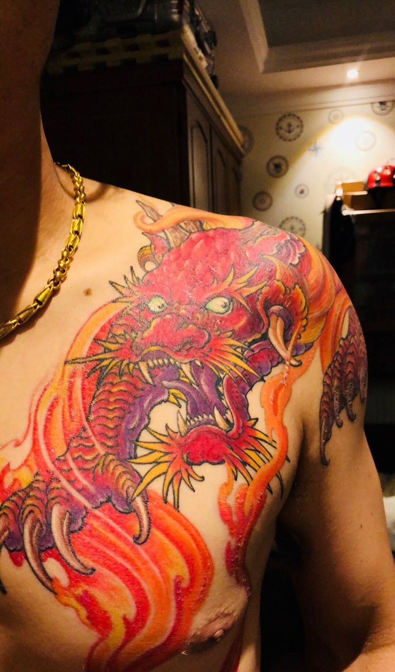 • T网红王老大花腿龙纹身图片_腿部新传统纹身图案