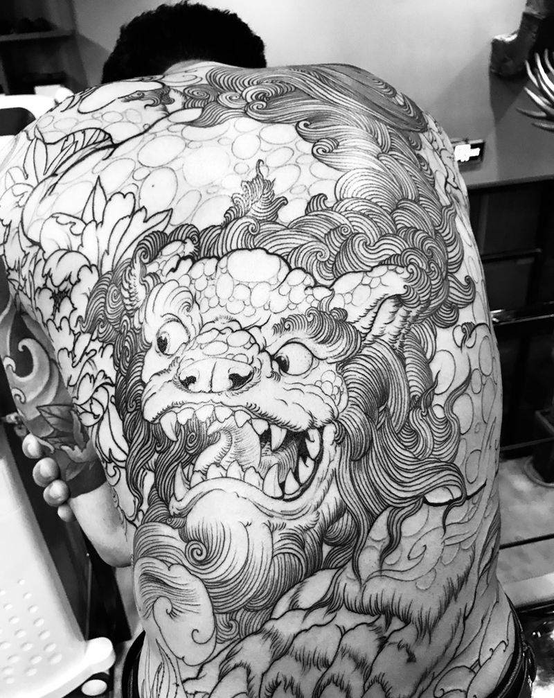 唐狮纹身图片_成品手稿腰部臀部静物人物清新习俗背部纹身图案