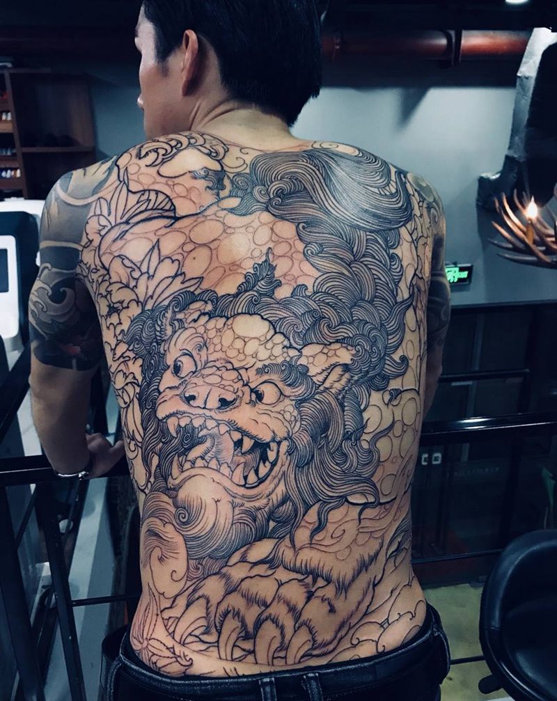唐狮纹身图片_成品手稿腰部臀部静物人物清新习俗背部纹身图案