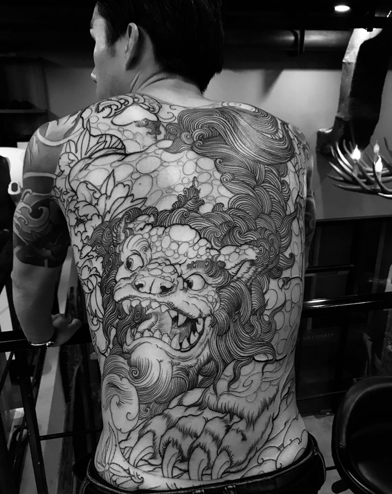 唐狮纹身图片_成品手稿腰部臀部静物人物清新习俗背部纹身图案