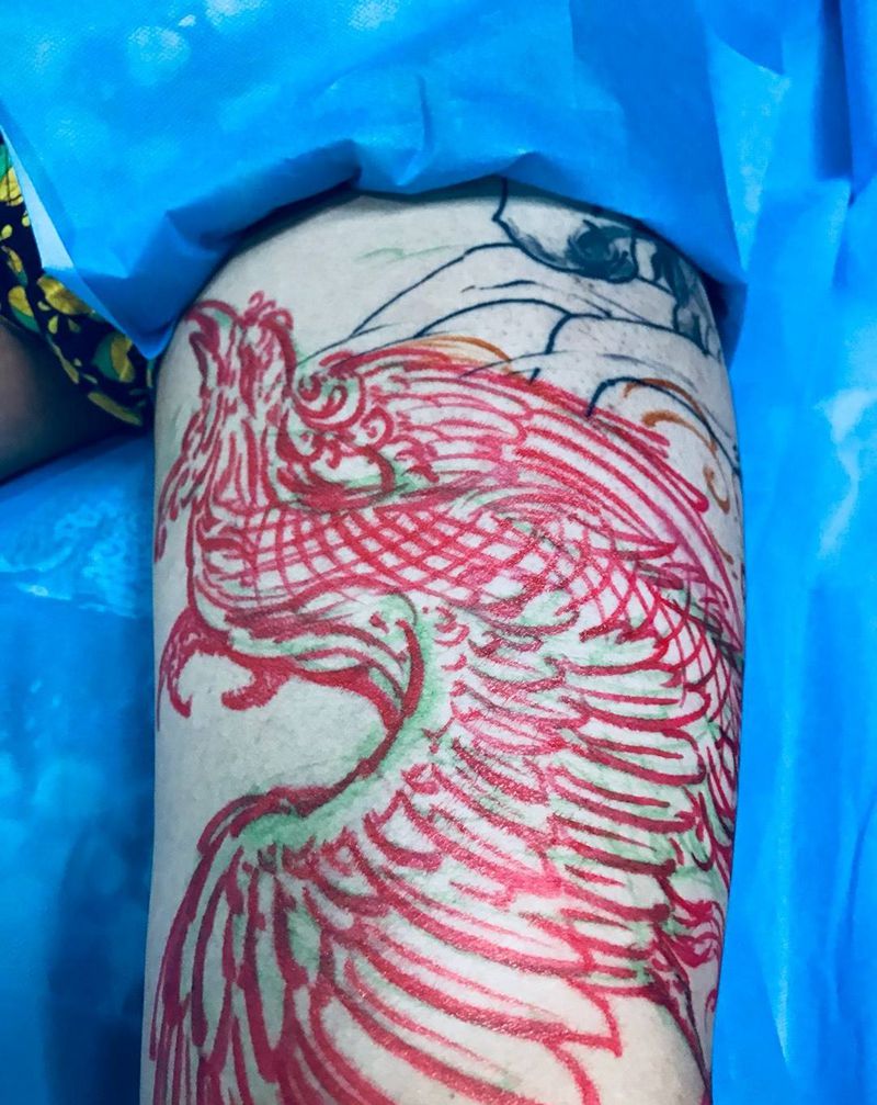 当前位置: 首页 >浙江省杭州市纹身店-异绣堂纹身工作室纹身图案>凤凰花腿局部纹身图片_传统成品手稿插画肩部腹部胸部颈部腰部背部纹身图案