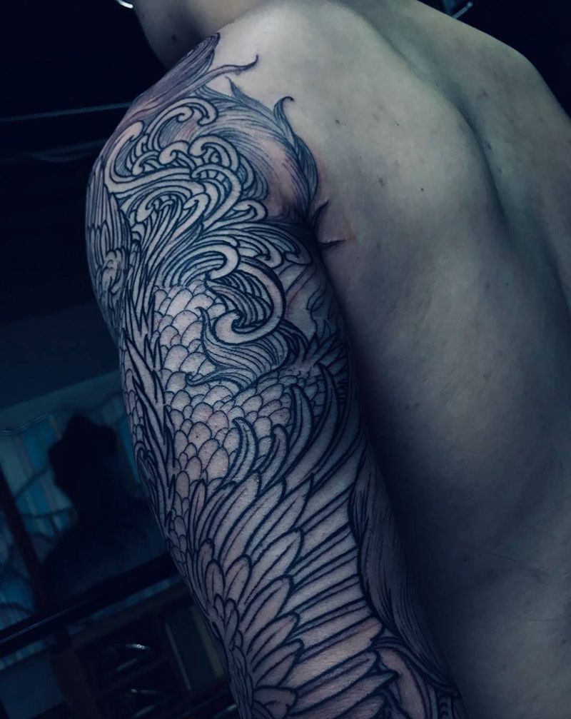 凤凰花臂纹身图片_插画手稿成品颈部肩部胸部腹部腰部背部臀部纹身图案