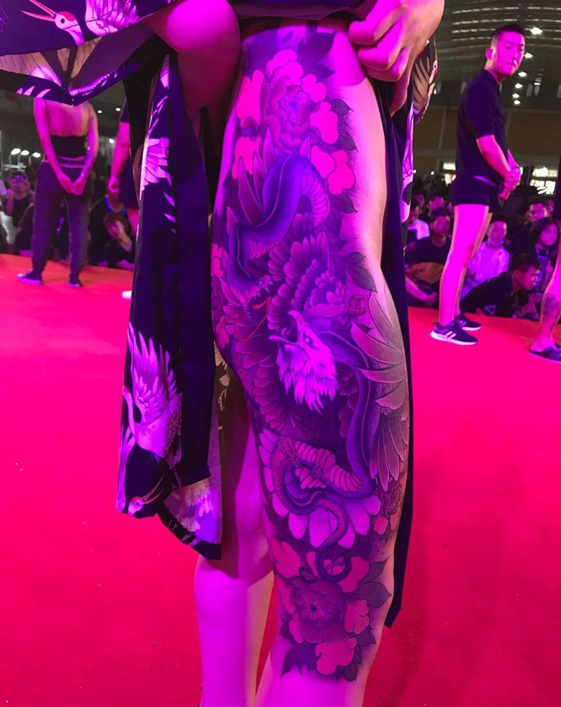 • T网红王老大花腿龙纹身图片_腿部新传统纹身图案