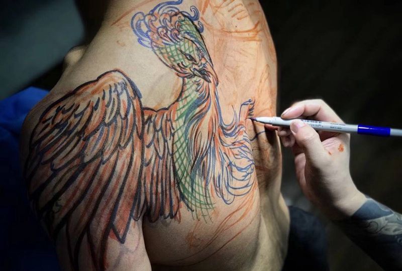 当前位置: 首页 >浙江省杭州市纹身店-异绣堂纹身工作室纹身图案>凤凰轮廓纹身图片_颈部臀部写实字符习俗欧美背部胸部腿部肩部纹身图案