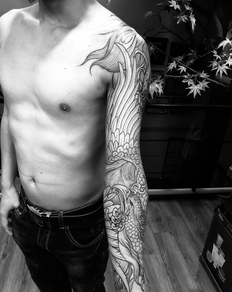 当前位置: 首页 >浙江省杭州市纹身店-异绣堂纹身工作室纹身图案>凤凰花臂纹身图片