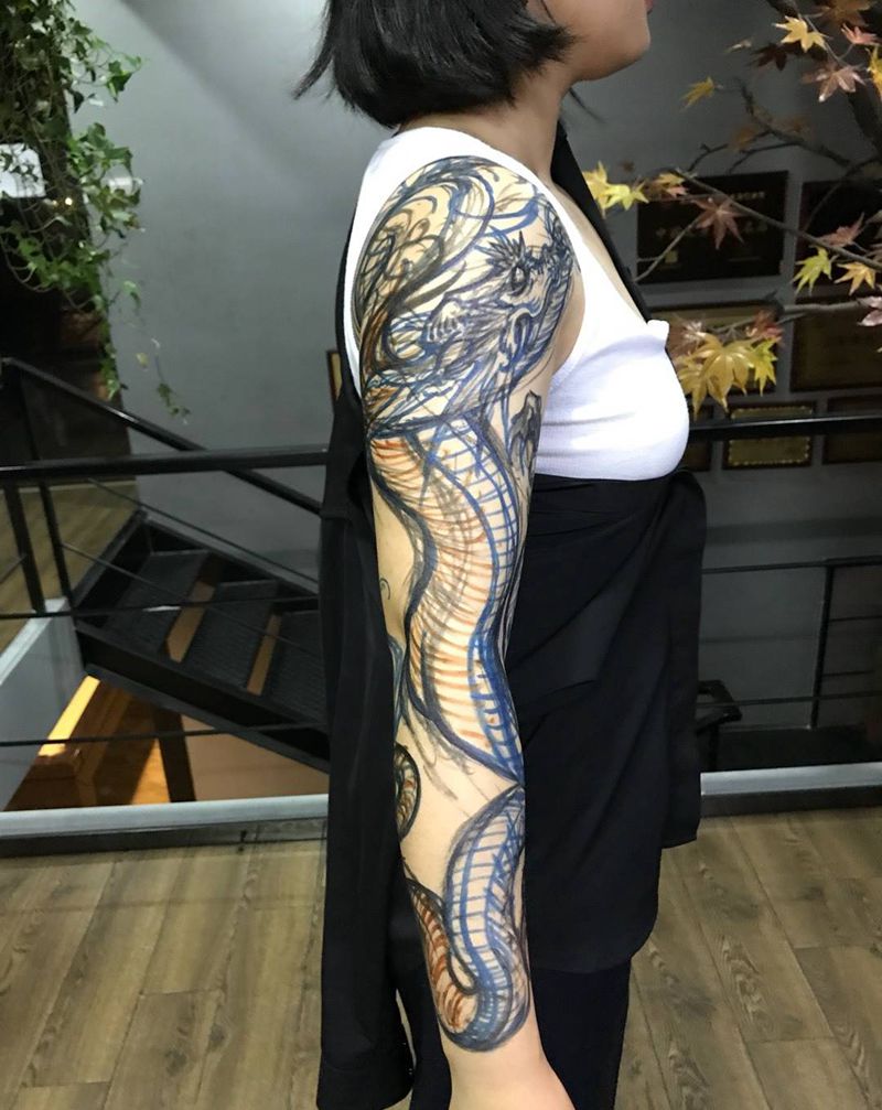 当前位置: 首页 >浙江省杭州市纹身店-异绣堂纹身工作室纹身图案>龙臂半成品纹身图片_手臂手部新传统龙臂纹身图案